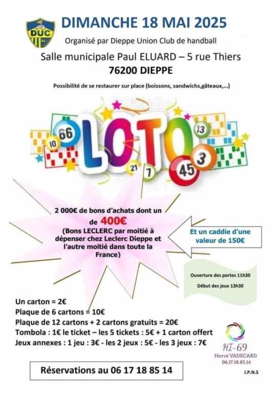 Réservez donc votre journée du samedi 09 décembre 2023 pour venir supporter vos équipes de moins de 11, moins de 15, seniors 1 et 2 de 14 h à 23h à la Maison Des Sports de Dieppe.